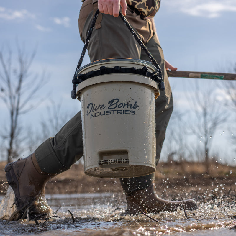 Every serious hunter needs a reliable way to transport and store essential gear, and the Dive Bomb Hunting Utility Bucket is built to handle the job. Designed for maximum durability, convenience, and versatility, this heavy-duty bucket serves as a portable storage solution, a comfortable hunting seat, and a dependable transport container for your gear. Whether you’re hauling shells, decoys, game, or tools, this multi-purpose bucket is an essential addition to any hunting setup.